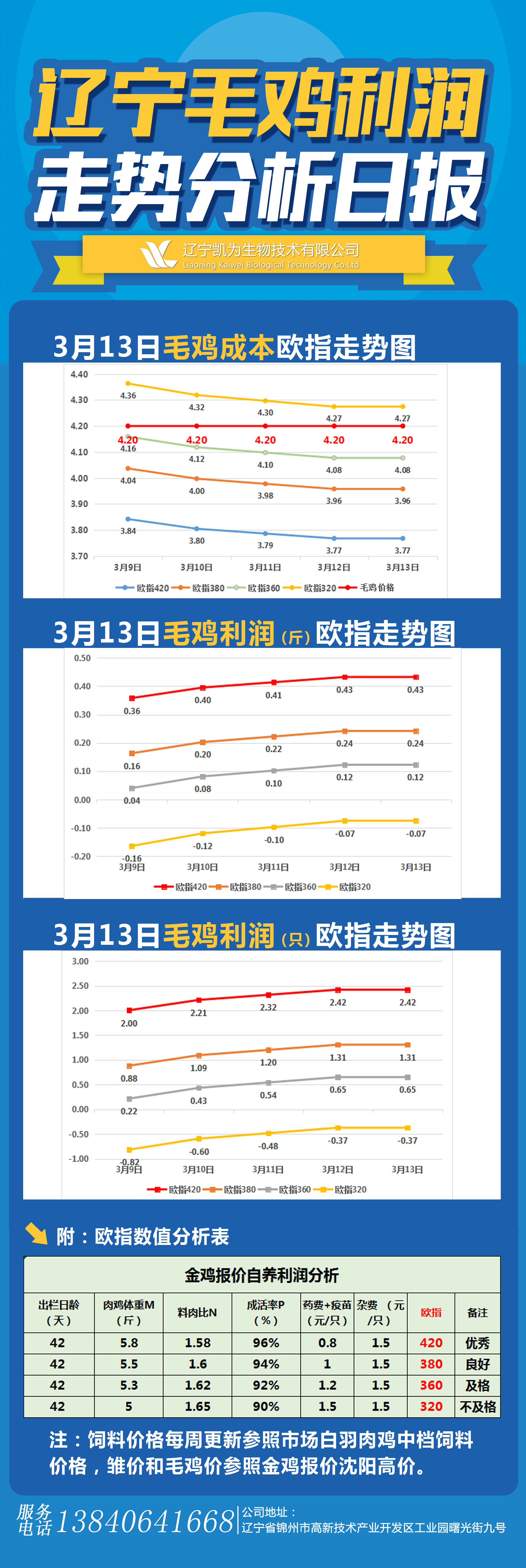 3月13日遼寧地區(qū)毛雞利潤走勢分析圖