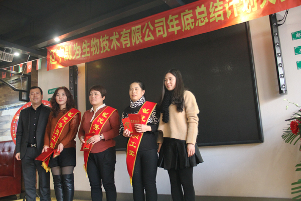 隨后,大會(huì)進(jìn)行了“生產(chǎn)部優(yōu)秀員工”,“六年貢獻(xiàn)獎(jiǎng)”,“十年貢獻(xiàn)獎(jiǎng)”的表彰活動(dòng)??偨?jīng)理王鐵良、銷售部總經(jīng)理趙福寬、集團(tuán)事業(yè)部經(jīng)理景立坤、生產(chǎn)部經(jīng)理肖營營,分別為獲獎(jiǎng)員工頒發(fā)了榮譽(yù)證書、獎(jiǎng)金或獎(jiǎng)品,鼓勵(lì)他們在新的一年里繼續(xù)努力工作,再創(chuàng)佳績。