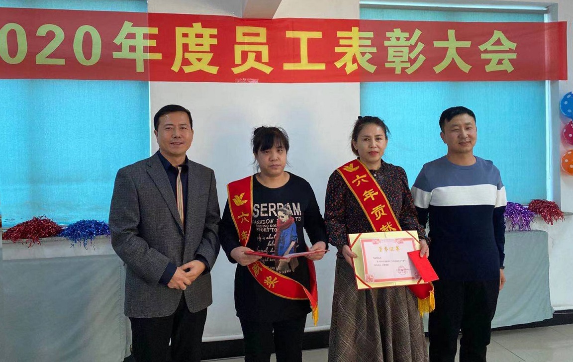 閆希東、薛曉娟獲得2020年度十年貢獻(xiàn)獎(jiǎng),十年的堅(jiān)守不渝,十年的默默耕作,他們把最美好的青春韶華賦予了我們?yōu)橹餐瑠^斗的事業(yè),十年如一日他們時(shí)刻心系企業(yè)的憂患,與企業(yè)同風(fēng)雨共命運(yùn),正是因?yàn)樗麄兊母冻鰟P為的今天才如此絢麗。公司總經(jīng)理王鐵良與銷(xiāo)售部經(jīng)理趙福寬為獲獎(jiǎng)?wù)哳C發(fā)榮譽(yù)證書(shū)。
