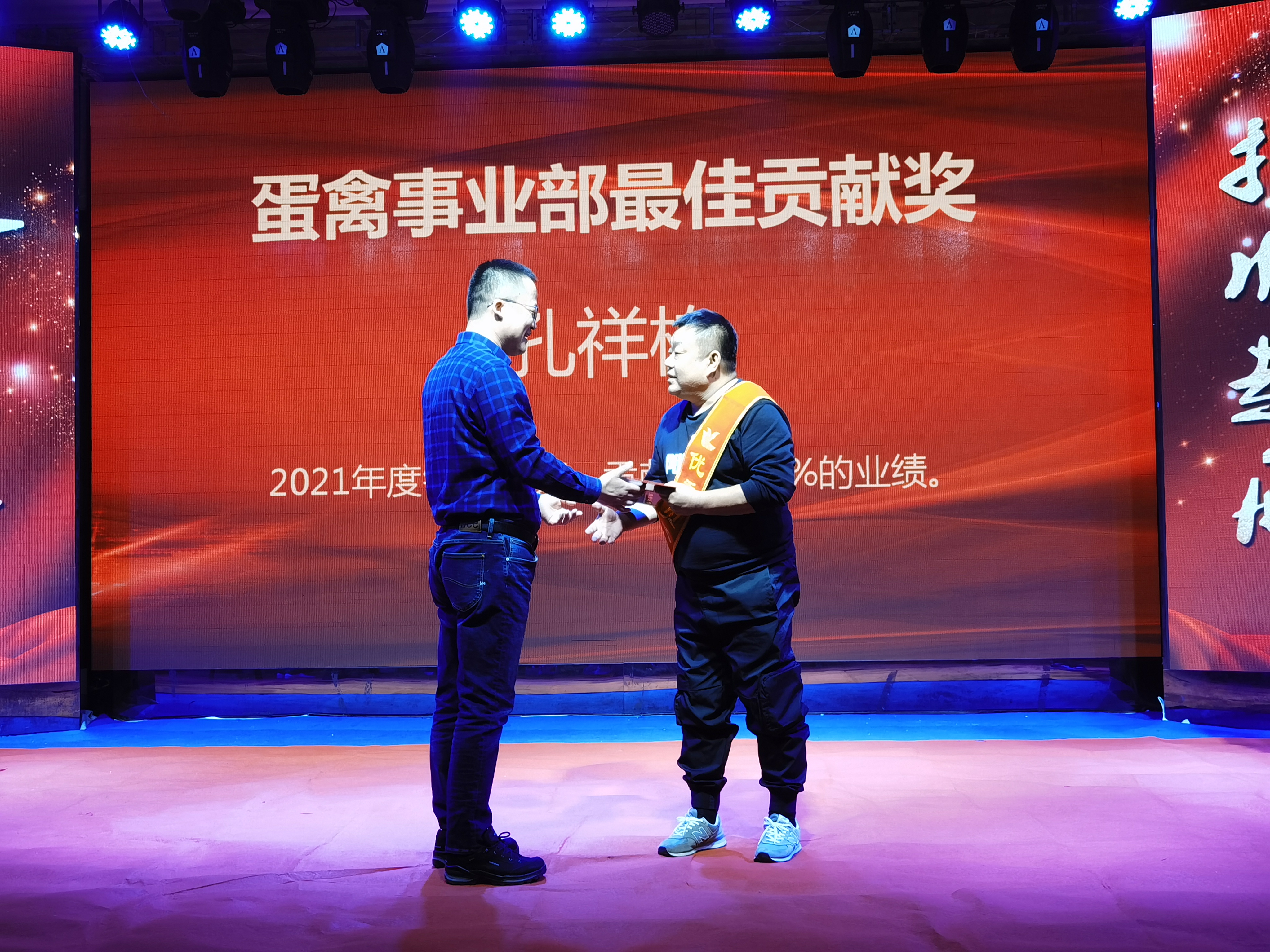 李榮久獲得年度銷售亞軍,2021年他和技術(shù)部李總服務(wù)了錦州周邊10余個大型養(yǎng)殖場,無數(shù)個星辰雨夜,多少次寒風冷雪都有著他們的身影的穿梭。精誠所至,金石為開,他用拼搏精神再次創(chuàng)造了年度銷售的奇跡。公司總裁王鐵良為獲獎?wù)?/span>頒獎。